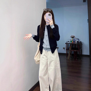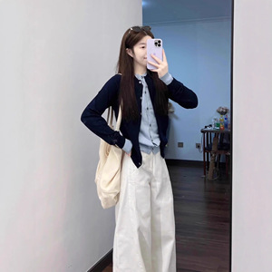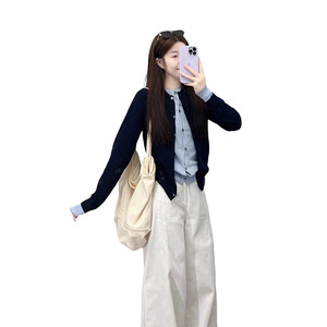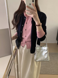 学院小香风撞色针织开衫假两件女2025新款秋冬韩系穿搭高级感毛衣