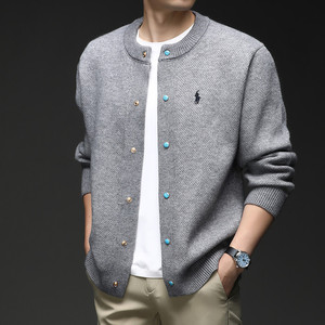 男士欧货新款针织开衫外套春秋季潮牌休闲刺绣宽松毛衣百搭男装