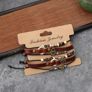 欧美跨境新品欧美复古风手工编织手镯时尚简约情侣款钥匙锁皮质手