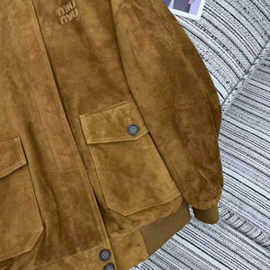 mm25秋冬新款复古美拉德洋气麂皮绒翻领长袖中长款夹克外套