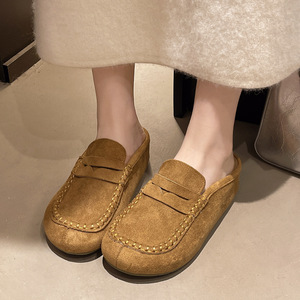 懒人休闲新款拖鞋百搭时尚包头半拖鞋反绒一脚蹬通勤户外卡其色
