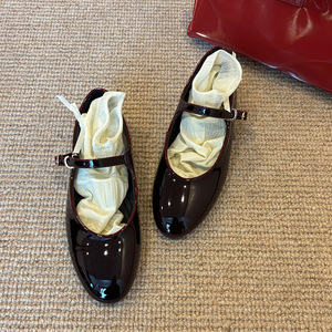 羊皮版~简约小皮鞋女英伦风新款玛丽珍鞋亮面浅口圆头一字扣单鞋