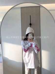 2025早秋新款领口梵文字母花臂印花圆领宽松长袖T恤男女同款