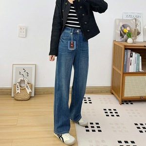 四面弹~设计感!2025秋季新款直筒牛仔裤女 高腰宽松显瘦软阔腿裤