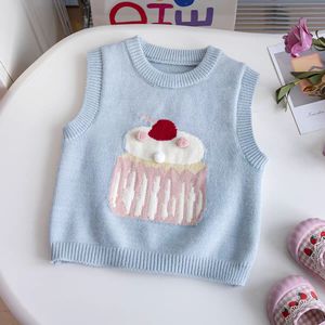柠里女童针织马甲秋季外搭宝宝新款童装毛衣卡通无袖春秋背心洋气