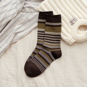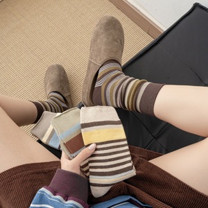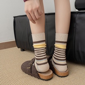 条纹无骨袜子女士中筒袜秋冬季新品撞色复古纯棉堆堆袜诸暨袜子批