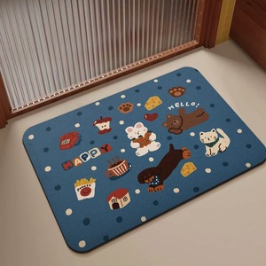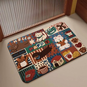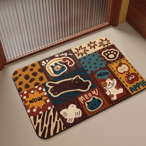 美式复古卡通动物硅藻泥地垫入户玄关浴室吸水防滑脚垫temu现货