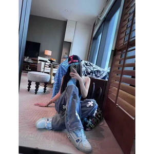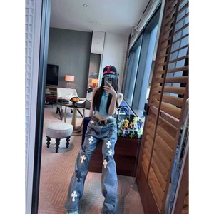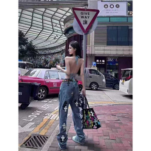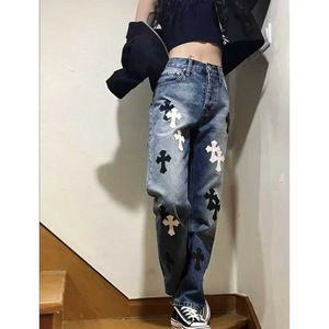 新款克罗伈牛仔裤男款美式潮牌十字架宽松直筒休闲阔腿裤子男装秋