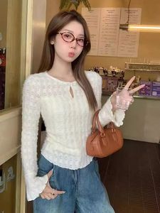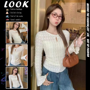 纯欲蕾丝镂空打底衫女秋冬季2025新款设计感小众磨毛内搭T恤上衣