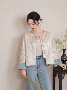 新中式古风典雅盘扣缎面改良重工提花小外套女民族风百搭长袖上衣