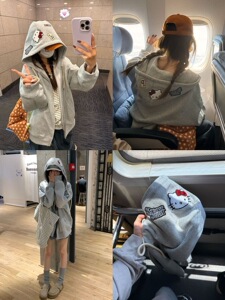 卡通潮牌刺绣连帽开衫拉链加绒加厚卫衣女春秋季新款美式高街上衣