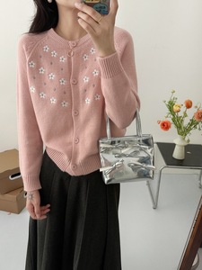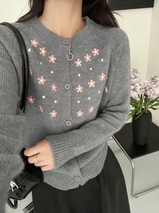 秋季女士宽松绣花针织毛衣开衫外套女2025新款高级感外搭早秋穿搭
