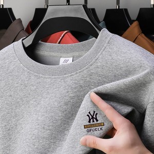 重磅100%纯棉卫衣男秋季新款青年宽松落肩圆领长袖t恤男士打底衫