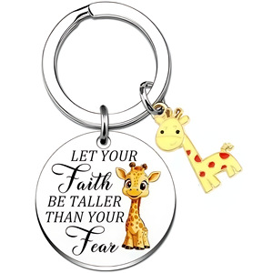 亚马逊不锈钢钥匙扣Faith长颈鹿爱好者送朋友圣诞节鼓励创意礼物
