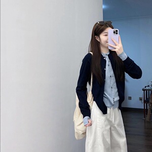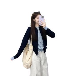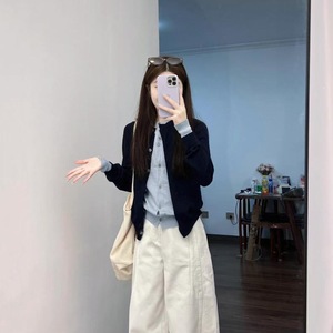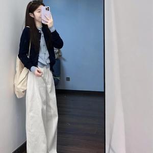 高级感秋季时尚假两件针织开衫气质甜色直筒牛仔裤两件套