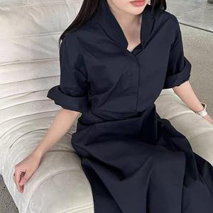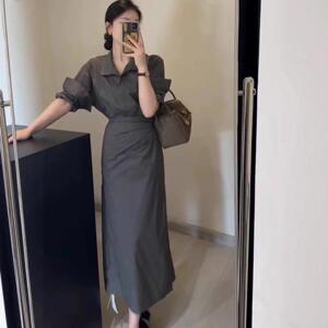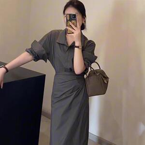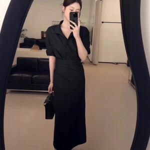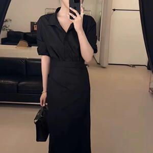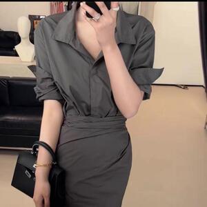设计感假两件衬衣系带连衣裙一片式收腰显瘦长袖长裙韩版气质新款