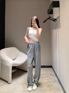 2025早秋新款南油工厂日常清爽简约运动风宽松百搭松紧腰休闲长裤