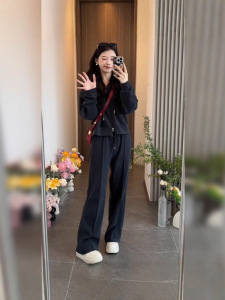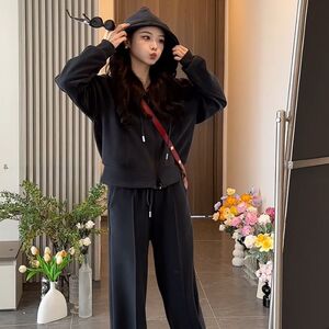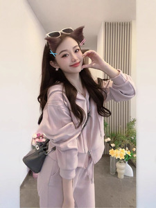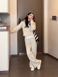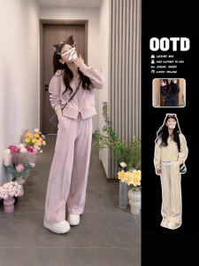 韩系盐系女生OOTD穿搭两件套拉链上衣+直筒裤时尚休闲运动套装女