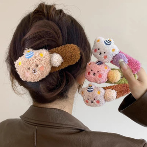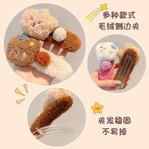 毛绒布丁小熊可爱鸭嘴夹大号发夹头饰刘海后脑勺少女日系秋天超萌