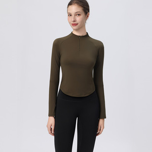 秋冬瑜伽服上衣女长袖立领修身女士半拉链跑步运动健身服长T恤
