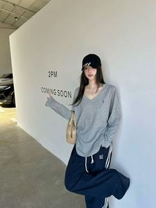 RL拉夫小马标纯棉短袖美式修身V领上衣打底衫刺绣纯色T恤女