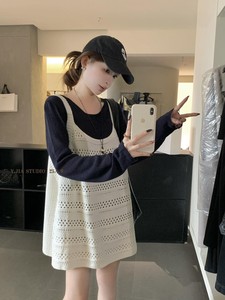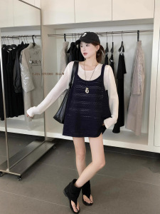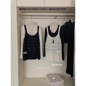 Y.JIA 伊嘉-韩系时髦镂空针织背心+叠穿打底针织衫两件套装女618