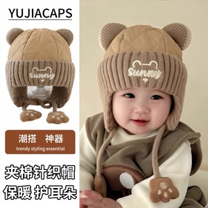 秋冬季儿童帽韩版男女冬天保暖夹棉护耳宝宝时尚防风套头婴儿帽子