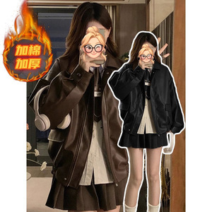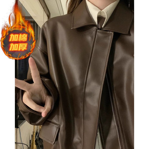 棕色皮衣外套女2025秋冬季新款小个子港风复古美式夹克美拉德机车