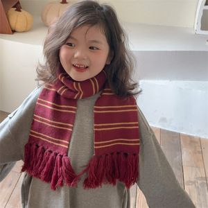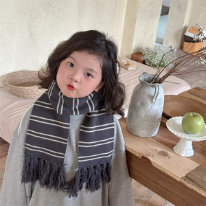 儿童流苏围巾2025秋冬新款男女童时髦穿搭长款针织亲肤横条纹围脖