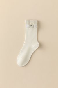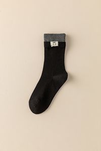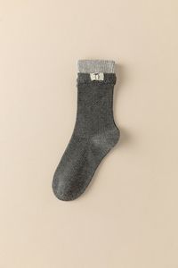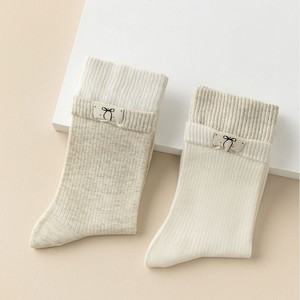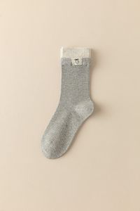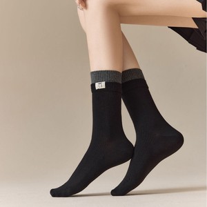袜子拼色双罗口女士春秋冬季棉中筒袜布标蝴蝶结条纹长筒袜