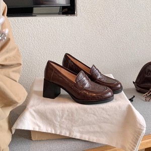牛皮版~苏茵茵7cm粗跟高跟鞋一脚蹬懒人乐福单鞋女复古jk风小皮鞋