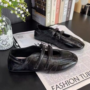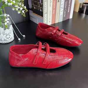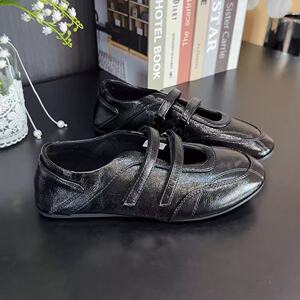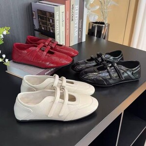芭蕾风德训鞋女款2025新款秋季魔术贴运动玛丽珍鞋浅口平底小白鞋