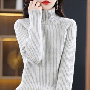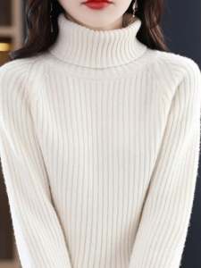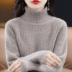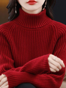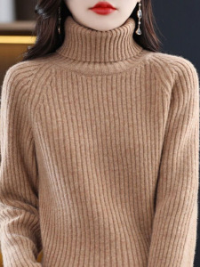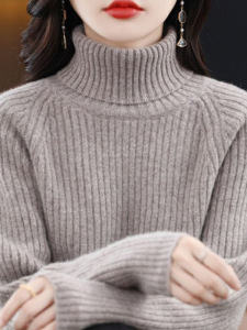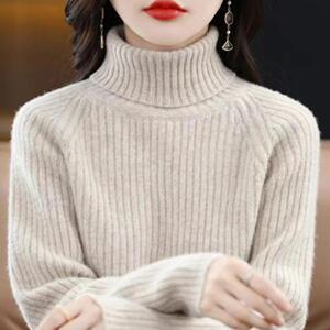 羊绒高领打底衫女宽松针织衫女2025新款秋冬长袖坑条毛衣内搭上衣