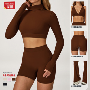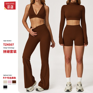泽创磨毛瑜伽套装休闲百搭紧身运动套装户外运动跑步健身套装4507