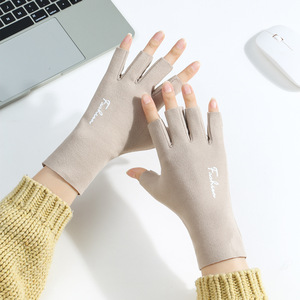 冬季保暖半指手套男女女写字时尚高弹户外开车跑步骑车美甲德绒露
