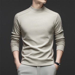 秋冬男装新款立领卫衣中青年时尚纯色长袖t恤舒适保暖打底衫上衣