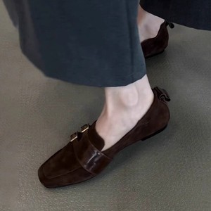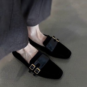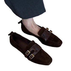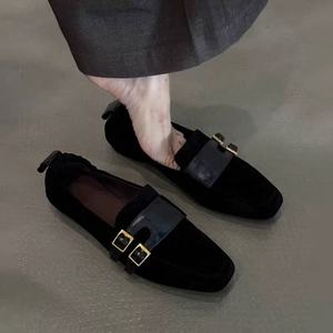 现货复古方头百搭气质通勤小众舒适显瘦皮带扣设计浅口平底单鞋