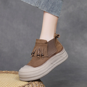吉树25秋冬头层牛皮波西米亚风流苏串珠单靴女休闲真皮切尔西短靴