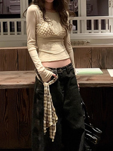 槿一 长袖圆领T恤女洋气修身短款上衣内搭打底衫小众纯欲独特别致