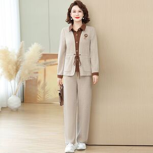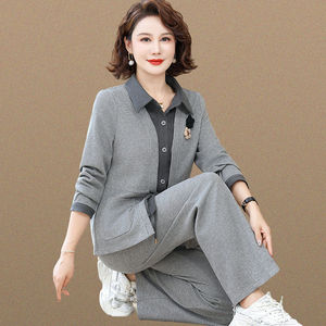 显瘦中老年女妈妈秋装中年宽松春秋运动服套装两件套新款外套