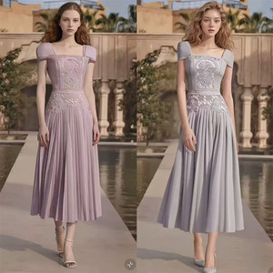 越南小众2025新款法式复古宫廷风蕾丝刺绣镂空收腰显瘦百褶连衣裙