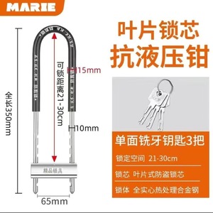 玻璃门锁U型锁抗液压剪防盗锁酒店商铺双门把手锁青岛久星U形锁无