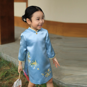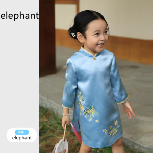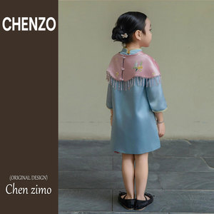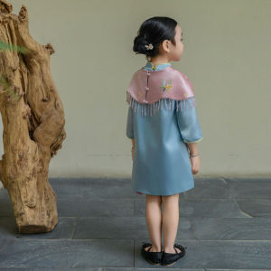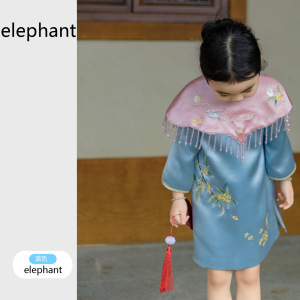 中秋限定女童汉服唐装儿童新中式披肩立领刺绣旗袍裙宝宝重工礼服