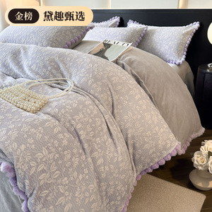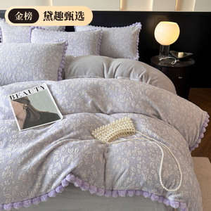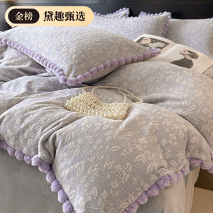 2025新款A类牛奶绒/兔毛球四件套轻奢风加厚保暖床单床笠四件套