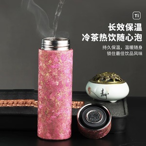 新款纯钛保温杯 大容量便携式钛杯冰花男士水杯商务高颜值泡茶杯