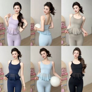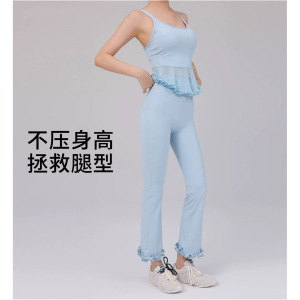 拼纱美背花边瑜伽背心舞蹈普拉提文胸运动固定胸垫七分长裤1855