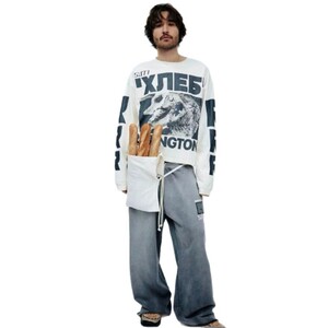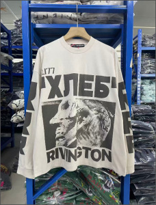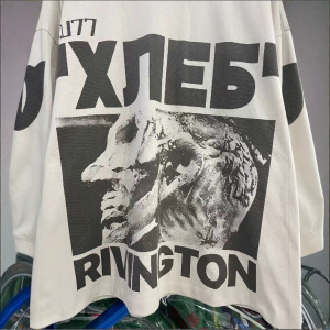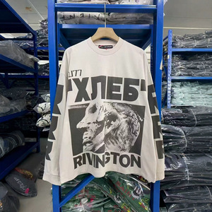 欧美潮牌RRR123复古vintage做旧水洗空难涂鸦印花宽松男女长袖T恤