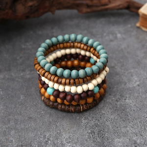 欧美跨境热销手工串珠手链男士复古风多层弹力线椰壳木珠串珠手链