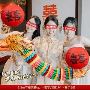 结婚剪纸舞龙婚礼新娘晨袍拍照道具接亲游戏伴娘婚房装饰纸龙拉花