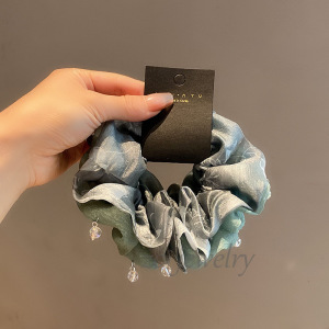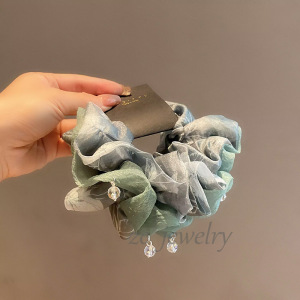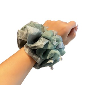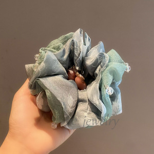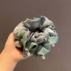 高级感淡绿扎染印花欧根纱水晶大肠发圈气质小众新款头花发绳发饰